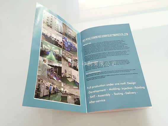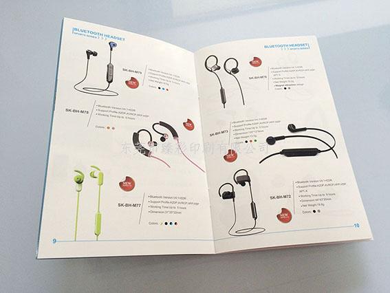 品名:东莞市天翼通讯电子产品画册,尺寸:11.5*18cm, 页码:32P,骑马钉。表面处理:封面封底双面哑胶,内页双面光油。